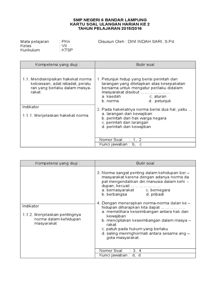 Soal ukk/ uas pkn kelas 7 smp/ mts semester 2 kurikulum 2013. Madrasah tsanawiyah semester genap tahun ajaran th. Pada video kali ini lentera belajar akan membahas soal pat ppkn . Soal soal uas / pat semester genap pkn kelas vii bisa didownload. Contoh soal pat pkn kelas 7 semester 2 kurikulum 2013 pilihlah salah satu jawaban yang paling tepat dari empat kemungkinan jawaban yang .